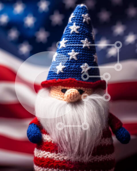 Intra Συλλεκτικό Ξύλινο Παζλ Plywood 4mm – Κροσέ gnome με αμερικανική σημαία Σε Ξύλινο Κουτί – Διαστάσεις Puzzle: 10×10 cm – 25 κομμάτια