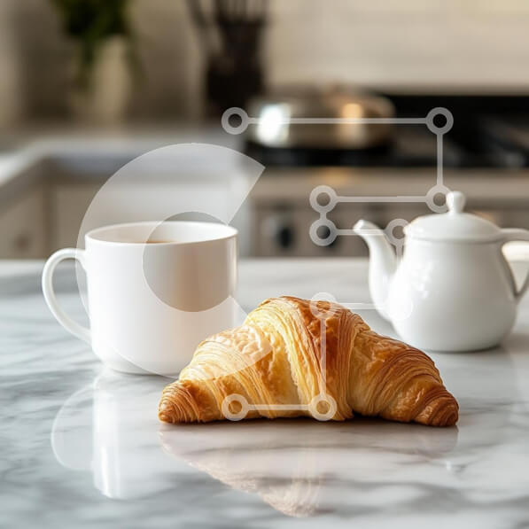 Intra Συλλεκτικό Ξύλινο Παζλ Plywood 4mm – Κρουασάν με καφέ και τσαγιέρα σε μαρμάρινη επιφάνεια Σε Ξύλινο Κουτί – Διαστάσεις: 10×10 cm – 25 κομμάτια