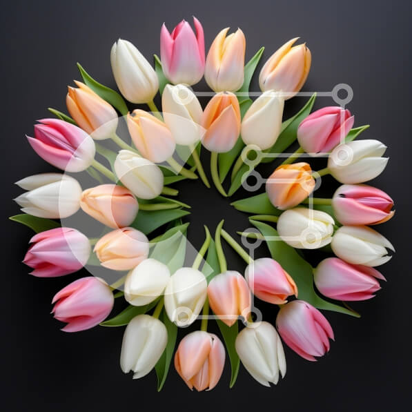 Intra Συλλεκτικό Ξύλινο Παζλ Plywood 4mm – Κυκλική διάταξη τουλίπες σε σκούρο φόντο Σε Ξύλινο Κουτί – Διαστάσεις: 10×10 cm – 25 κομμάτια