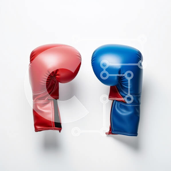 Intra Συλλεκτικό Ξύλινο Παζλ Plywood 4mm – Κόκκινα και μπλε γάντια του μποξ σε άσπρο φόντο Σε Ξύλινο Κουτί – Διαστάσεις Puzzle: 10×10 cm – 25 κομμάτια