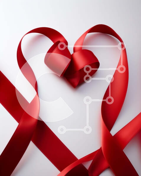 Intra Συλλεκτικό Ξύλινο Παζλ Plywood 4mm – Κόκκινες κορδέλες σε σχήμα καρδιάς σε λευκό φόντο Σε Ξύλινο Κουτί – Διαστάσεις Puzzle: 10×10 cm – 25 κομμάτια