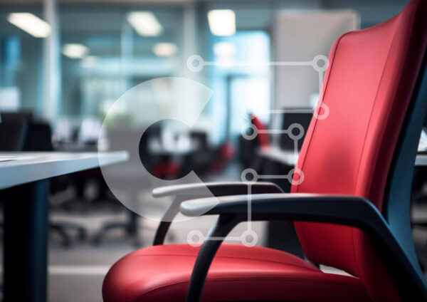 Intra Συλλεκτικό Ξύλινο Παζλ Plywood 4mm – Κόκκινη δερμάτινη καρέκλα σε χώρο γραφείου με γραφεία και καρέκλες Σε Ξύλινο Κουτί – Διαστάσεις Puzzle: 10×10 cm – 25 κομμάτια