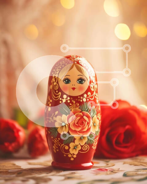 Intra Συλλεκτικό Ξύλινο Παζλ Plywood 4mm – Κόκκινη κούκλα φωλιάσματος με τριαντάφυλλα Σε Ξύλινο Κουτί – Διαστάσεις: 10×10 cm – 25 κομμάτια