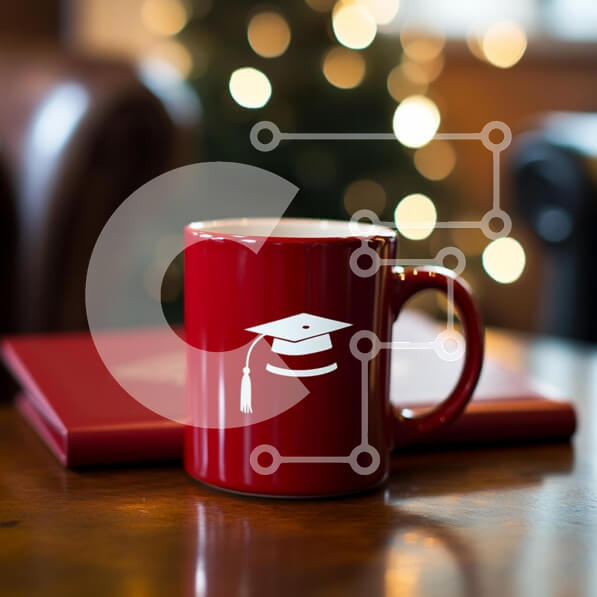 Intra Συλλεκτικό Ξύλινο Παζλ Plywood 4mm – Κόκκινη κούπα αποφοίτησης σε ξύλινο τραπέζι Σε Ξύλινο Κουτί – Διαστάσεις Puzzle: 10×10 cm – 25 κομμάτια