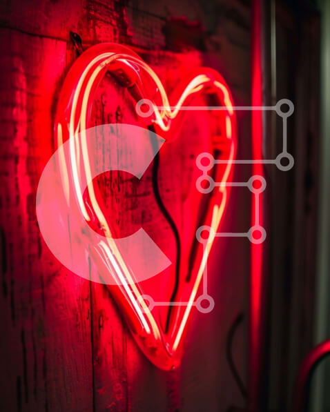 Intra Συλλεκτικό Ξύλινο Παζλ Plywood 4mm – Κόκκινη πινακίδα νέον σε σχήμα καρδιάς στον τοίχο Σε Ξύλινο Κουτί – Διαστάσεις Puzzle: 10×10 cm – 25 κομμάτια