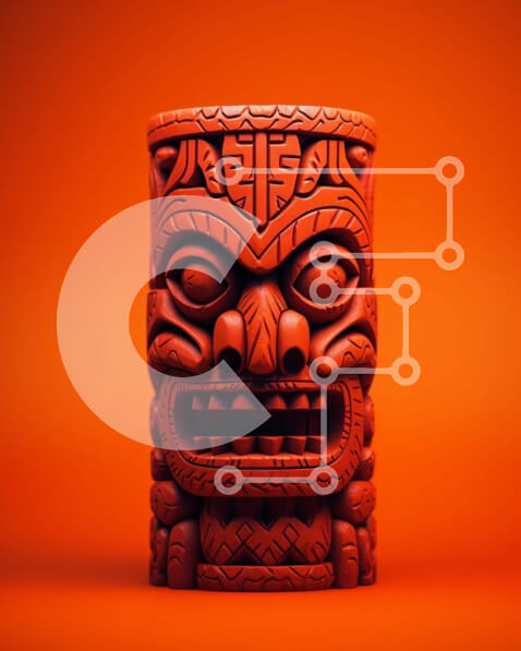 Intra Συλλεκτικό Ξύλινο Παζλ Plywood 4mm – Κόκκινο άγαλμα Tiki σε πορτοκαλί φόντο Σε Ξύλινο Κουτί – Διαστάσεις: 10×10 cm – 25 κομμάτια