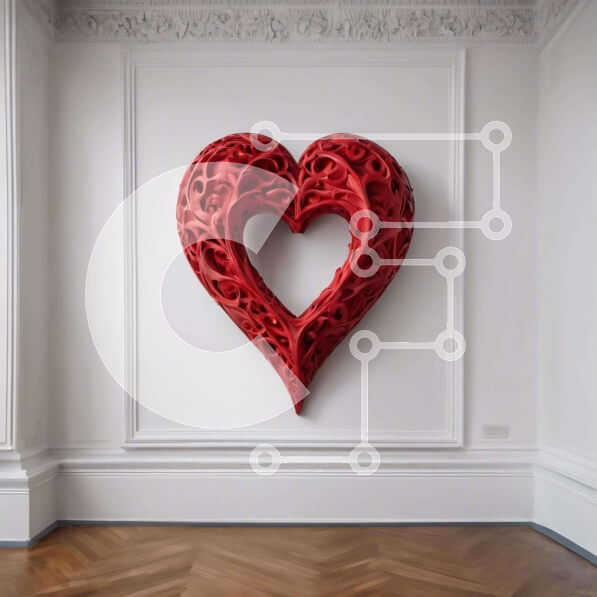 Intra Συλλεκτικό Ξύλινο Παζλ Plywood 4mm – Κόκκινο γλυπτό σε σχήμα καρδιάς σε ένα άδειο λευκό δωμάτιο Σε Ξύλινο Κουτί – Διαστάσεις Puzzle: 10×10 cm – 25 κομμάτια
