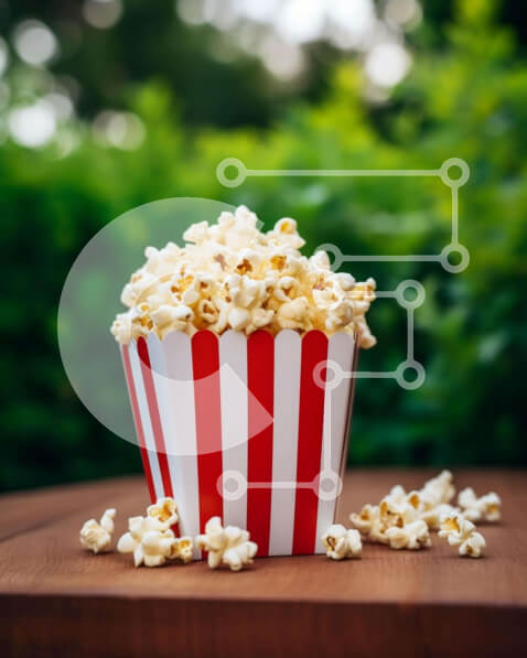 Intra Συλλεκτικό Ξύλινο Παζλ Plywood 4mm – Κόκκινο και λευκό ριγέ κουτί ποπ κορν σε ξύλινο τραπέζι εξωτερικού χώρου Σε Ξύλινο Κουτί – Διαστάσεις: 10×10 cm – 25 κομμάτια