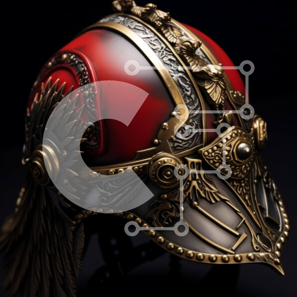 Intra Συλλεκτικό Ξύλινο Παζλ Plywood 4mm – Κόκκινο και χρυσό περίτεχνο κράνος σε μαύρο φόντο Σε Ξύλινο Κουτί – Διαστάσεις: 10×10 cm – 25 κομμάτια