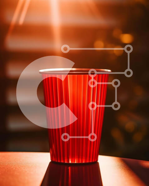 Intra Συλλεκτικό Ξύλινο Παζλ Plywood 4mm – Κόκκινο πλαστικό κύπελλο σε ξύλινο τραπέζι Σε Ξύλινο Κουτί – Διαστάσεις: 10×10 cm – 25 κομμάτια