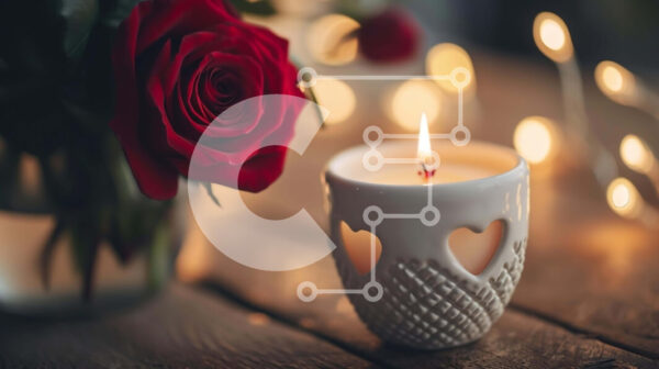 Intra Συλλεκτικό Ξύλινο Παζλ Plywood 4mm – Κόκκινο τριαντάφυλλο με αναμμένο κερί σε ξύλινο τραπέζι Σε Ξύλινο Κουτί – Διαστάσεις Puzzle: 10×10 cm – 25 κομμάτια