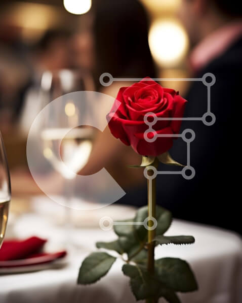 Intra Συλλεκτικό Ξύλινο Παζλ Plywood 4mm – Κόκκινο τριαντάφυλλο σε ένα τραπέζι με ποτήρια κρασιού και ασημικά Σε Ξύλινο Κουτί – Διαστάσεις: 10×10 cm – 25 κομμάτια