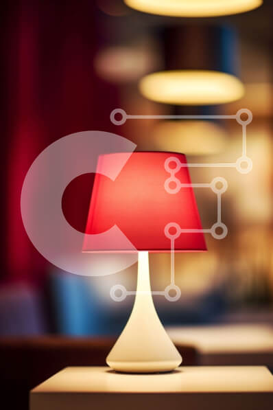 Intra Συλλεκτικό Ξύλινο Παζλ Plywood 4mm – Κόκκινο φωτιστικό σε λευκό τραπέζι σε δωμάτιο με χαμηλό φωτισμό Σε Ξύλινο Κουτί – Διαστάσεις Puzzle: 10×10 cm – 25 κομμάτια