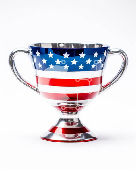 Intra Συλλεκτικό Ξύλινο Παζλ Plywood 4mm – Κύπελλο τρόπαιο με θέμα την αμερικανική σημαία σε λευκό φόντο Σε Ξύλινο Κουτί – Διαστάσεις: 10×10 cm – 25 κομμάτια