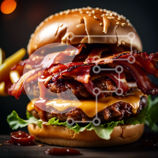 Intra Συλλεκτικό Ξύλινο Παζλ Plywood 4mm – Λαχταριστό χάμπουργκερ με μπέικον, τυρί και τηγανιτές πατάτες Σε Ξύλινο Κουτί – Διαστάσεις: 10×10 cm – 25 κομμάτια