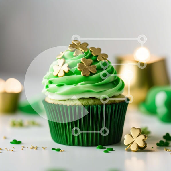Intra Συλλεκτικό Ξύλινο Παζλ Plywood 4mm – Λαχταριστό πράσινο Cupcake με χρυσά τριφύλλια Σε Ξύλινο Κουτί – Διαστάσεις: 10×10 cm – 25 κομμάτια