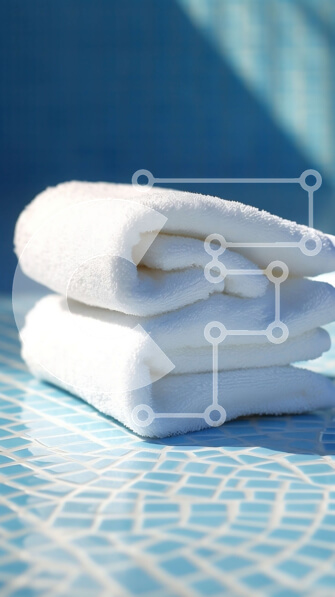Intra Συλλεκτικό Ξύλινο Παζλ Plywood 4mm – Λευκές πετσέτες διπλωμένες στην άκρη μιας πισίνας Σε Ξύλινο Κουτί – Διαστάσεις Puzzle: 10×10 cm – 25 κομμάτια