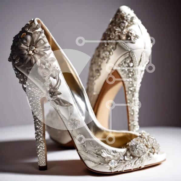Intra Συλλεκτικό Ξύλινο Παζλ Plywood 4mm – Λευκές ψηλοτάκουνες γόβες με πέρλες και κρύσταλλα Σε Ξύλινο Κουτί – Διαστάσεις: 10×10 cm – 25 κομμάτια