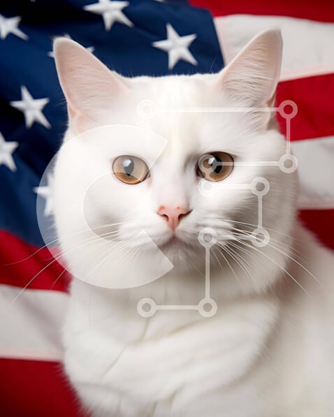 Intra Συλλεκτικό Ξύλινο Παζλ Plywood 4mm – Λευκή γάτα μπροστά από την αμερικανική σημαία Σε Ξύλινο Κουτί – Διαστάσεις: 10×10 cm – 25 κομμάτια