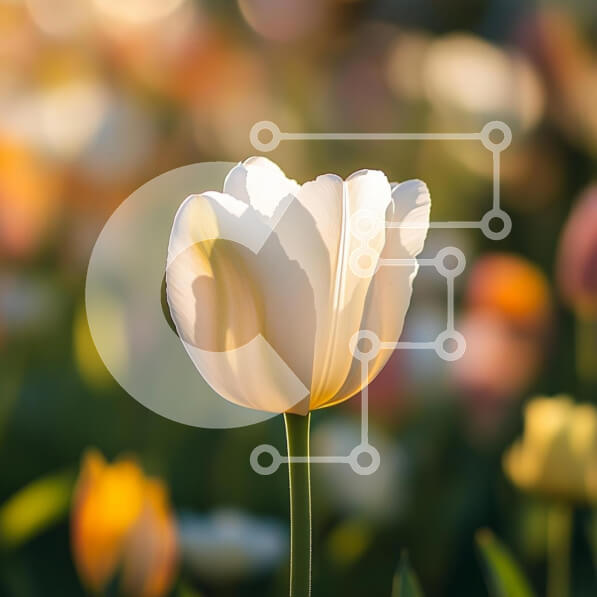 Intra Συλλεκτικό Ξύλινο Παζλ Plywood 4mm – Λευκή τουλίπα σε έναν πολύχρωμο κήπο Σε Ξύλινο Κουτί – Διαστάσεις: 10×10 cm – 25 κομμάτια