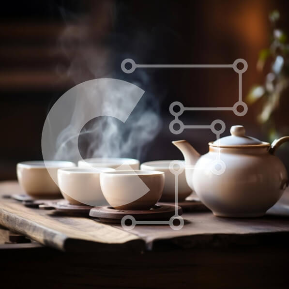 Intra Συλλεκτικό Ξύλινο Παζλ Plywood 4mm – Λευκή τσαγιέρα και φλιτζάνια σε ξύλινο τραπέζι Σε Ξύλινο Κουτί – Διαστάσεις: 10×10 cm – 25 κομμάτια