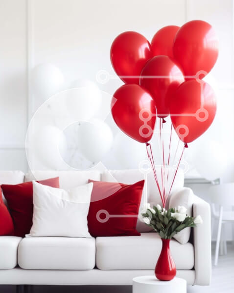 Intra Συλλεκτικό Ξύλινο Παζλ Plywood 4mm – Λευκός καναπές με κόκκινα μπαλόνια και βάζο Σε Ξύλινο Κουτί – Διαστάσεις Puzzle: 10×10 cm – 25 κομμάτια