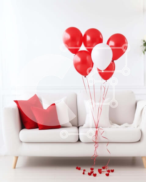 Intra Συλλεκτικό Ξύλινο Παζλ Plywood 4mm – Λευκός καναπές με κόκκινα και λευκά μπαλόνια Σε Ξύλινο Κουτί – Διαστάσεις Puzzle: 10×10 cm – 25 κομμάτια