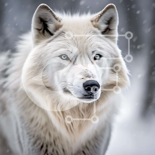 Intra Συλλεκτικό Ξύλινο Παζλ Plywood 4mm – Λευκός λύκος που στέκεται στο χιόνι με τα μάτια ορθάνοιχτα Σε Ξύλινο Κουτί – Διαστάσεις: 10×10 cm – 25 κομμάτια