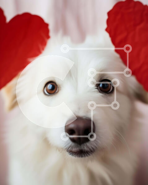Intra Συλλεκτικό Ξύλινο Παζλ Plywood 4mm – Λευκός σκύλος που γιορτάζει την Ημέρα του Αγίου Βαλεντίνου με χάρτινα αυτιά σε σχήμα καρδιάς Σε Ξύλινο Κουτί – Διαστάσεις: 10×10 cm – 25 κομμάτια