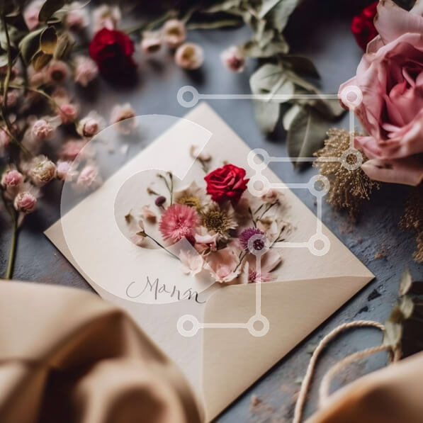 Intra Συλλεκτικό Ξύλινο Παζλ Plywood 4mm – Λευκός φάκελος με κόκκινο τριαντάφυλλο που περιβάλλεται από αποξηραμένα λουλούδια και πράσινο Σε Ξύλινο Κουτί – Διαστάσεις: 10×10 cm – 25 κομμάτια