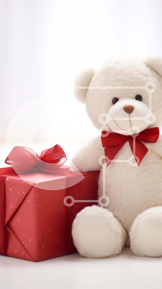 Intra Συλλεκτικό Ξύλινο Παζλ Plywood 4mm – Λευκό αρκουδάκι και κόκκινο κουτί δώρου Σε Ξύλινο Κουτί – Διαστάσεις Puzzle: 10×10 cm – 25 κομμάτια