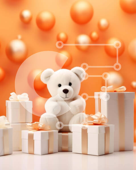 Intra Συλλεκτικό Ξύλινο Παζλ Plywood 4mm – Λευκό αρκουδάκι και κουτιά δώρων με πορτοκαλί και χρυσά μπαλόνια Σε Ξύλινο Κουτί – Διαστάσεις: 10×10 cm – 25 κομμάτια