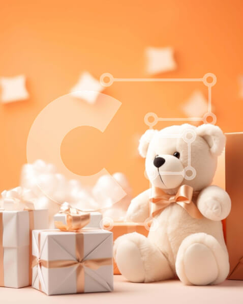 Intra Συλλεκτικό Ξύλινο Παζλ Plywood 4mm – Λευκό αρκουδάκι με κουτιά δώρων σε πορτοκαλί φόντο Σε Ξύλινο Κουτί – Διαστάσεις: 10×10 cm – 25 κομμάτια