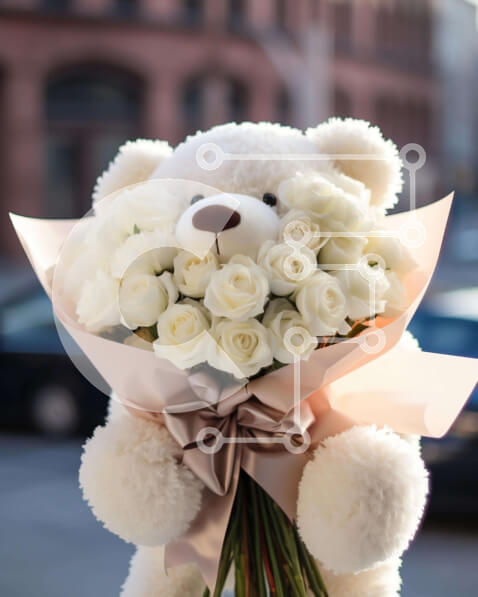 Intra Συλλεκτικό Ξύλινο Παζλ Plywood 4mm – Λευκό αρκουδάκι με λευκά τριαντάφυλλα Σε Ξύλινο Κουτί – Διαστάσεις Puzzle: 10×10 cm – 25 κομμάτια