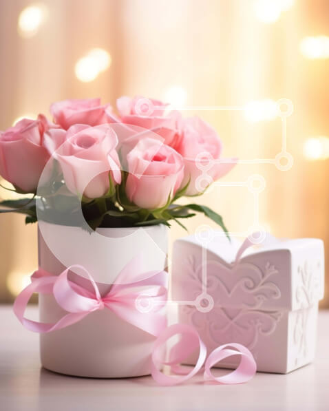 Intra Συλλεκτικό Ξύλινο Παζλ Plywood 4mm – Λευκό βάζο με ροζ τριαντάφυλλα και κουτιά δώρων Σε Ξύλινο Κουτί – Διαστάσεις Puzzle: 10×10 cm – 25 κομμάτια