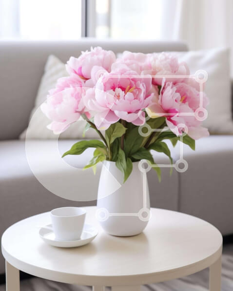 Intra Συλλεκτικό Ξύλινο Παζλ Plywood 4mm – Λευκό βάζο με ροζ λουλούδια και φλιτζάνι καφέ στο τραπεζάκι σαλονιού Σε Ξύλινο Κουτί – Διαστάσεις Puzzle: 10×10 cm – 25 κομμάτια
