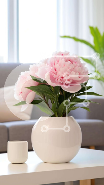 Intra Συλλεκτικό Ξύλινο Παζλ Plywood 4mm – Λευκό βάζο με ροζ λουλούδια στο σαλόνι Σε Ξύλινο Κουτί – Διαστάσεις Puzzle: 10×10 cm – 25 κομμάτια