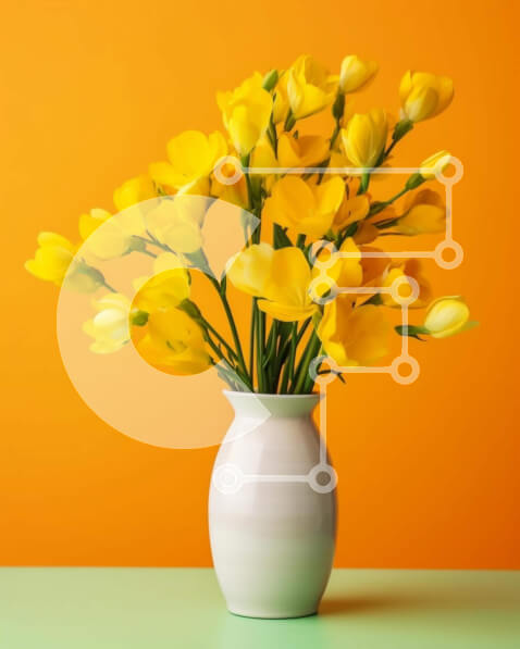 Intra Συλλεκτικό Ξύλινο Παζλ Plywood 4mm – Λευκό βάζο με κίτρινα λουλούδια σε πορτοκαλί φόντο Σε Ξύλινο Κουτί – Διαστάσεις Puzzle: 10×10 cm – 25 κομμάτια