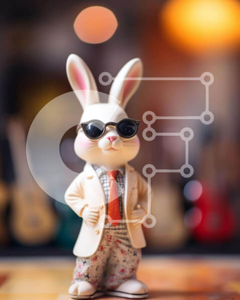 Intra Συλλεκτικό Ξύλινο Παζλ Plywood 4mm – Λευκό ειδώλιο λαγουδάκι με γυαλιά ηλίου και κιθάρες Σε Ξύλινο Κουτί – Διαστάσεις: 10×10 cm – 25 κομμάτια
