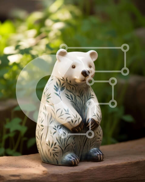 Intra Συλλεκτικό Ξύλινο Παζλ Plywood 4mm – Λευκό και μπλε κεραμικό ειδώλιο αρκούδας σε ξύλινο πάγκο Σε Ξύλινο Κουτί – Διαστάσεις: 10×10 cm – 25 κομμάτια