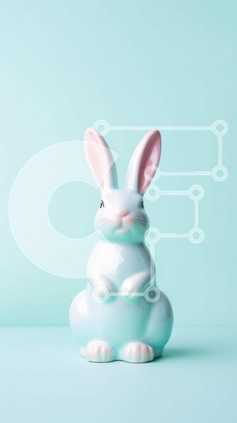 Intra Συλλεκτικό Ξύλινο Παζλ Plywood 4mm – Λευκό κεραμικό ειδώλιο λαγουδάκι σε φόντο Aqua Σε Ξύλινο Κουτί – Διαστάσεις: 10×10 cm – 25 κομμάτια