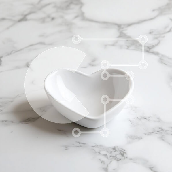 Intra Συλλεκτικό Ξύλινο Παζλ Plywood 4mm – Λευκό κεραμικό πιάτο σε σχήμα καρδιάς σε μαρμάρινη επιφάνεια Σε Ξύλινο Κουτί – Διαστάσεις: 10×10 cm – 25 κομμάτια