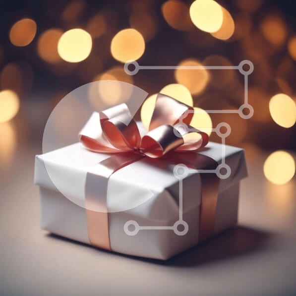 Intra Συλλεκτικό Ξύλινο Παζλ Plywood 4mm – Λευκό κουτί δώρου με πορτοκαλί κορδέλα και πολύχρωμα φώτα Bokeh Σε Ξύλινο Κουτί – Διαστάσεις: 10×10 cm – 25 κομμάτια