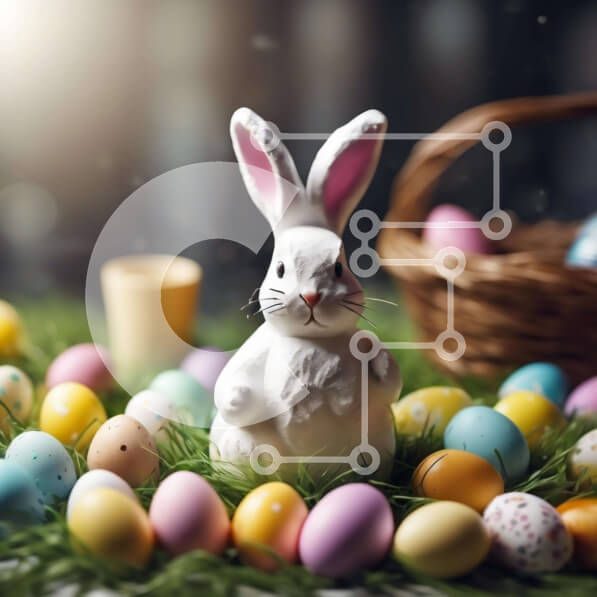 Intra Συλλεκτικό Ξύλινο Παζλ Plywood 4mm – Λευκό λαγουδάκι και Πασχαλινά αυγά στη χλόη Σε Ξύλινο Κουτί – Διαστάσεις Puzzle: 10×10 cm – 25 κομμάτια