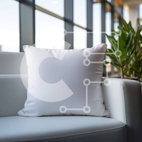 Intra Συλλεκτικό Ξύλινο Παζλ Plywood 4mm – Λευκό μαξιλάρι σε λευκό δερμάτινο καναπέ με θέα στον ορίζοντα της πόλης Σε Ξύλινο Κουτί – Διαστάσεις Puzzle: 10×10 cm – 25 κομμάτια