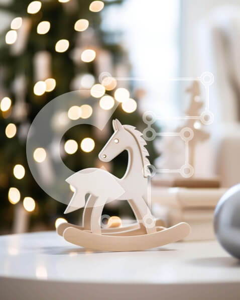 Intra Συλλεκτικό Ξύλινο Παζλ Plywood 4mm – Λευκό παιχνίδι αλόγων που κουνιέται μπροστά από το χριστουγεννιάτικο δέντρο Σε Ξύλινο Κουτί – Διαστάσεις: 10×10 cm – 25 κομμάτια