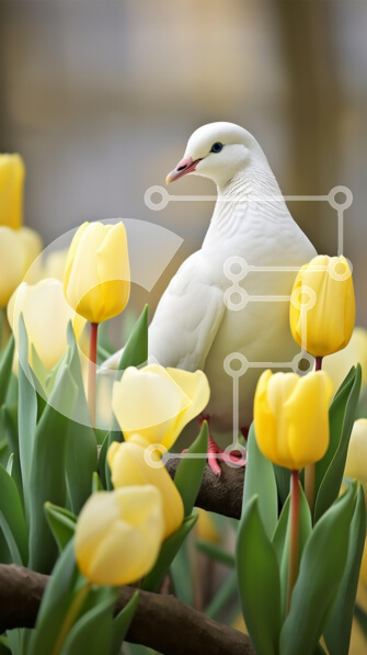 Intra Συλλεκτικό Ξύλινο Παζλ Plywood 4mm – Λευκό Περιστέρι ανάμεσα στις κίτρινες τουλίπες Σε Ξύλινο Κουτί – Διαστάσεις: 10×10 cm – 25 κομμάτια