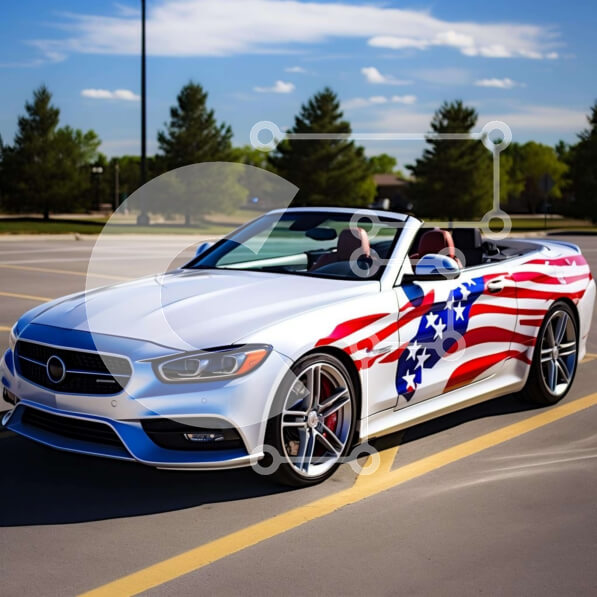 Intra Συλλεκτικό Ξύλινο Παζλ Plywood 4mm – Λευκό Mercedes-Benz S-Class Cabriolet με αμερικανική σημαία Σε Ξύλινο Κουτί – Διαστάσεις Puzzle: 10×10 cm – 25 κομμάτια