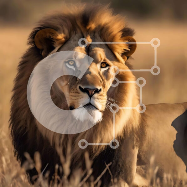 Intra Συλλεκτικό Ξύλινο Παζλ Plywood 4mm – Λιοντάρι που αναπαύεται σε ένα χορταριασμένο χωράφι με άλλα άγρια ζώα Σε Ξύλινο Κουτί – Διαστάσεις: 10×10 cm – 25 κομμάτια