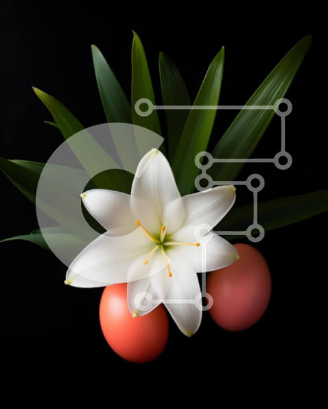 Intra Συλλεκτικό Ξύλινο Παζλ Plywood 4mm – Λουλούδι κρίνων Πάσχας και κόκκινα αυγά σε μαύρο φόντο Σε Ξύλινο Κουτί – Διαστάσεις: 10×10 cm – 25 κομμάτια